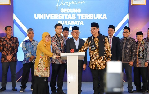 Menko PMK Pratikno (tengah) dalam peresmian Gedung UT Surabaya dan SALUT berbasis pesantren di Kampus UT Surabaya, Sabtu (17/5/2025). Foto: humas PMK