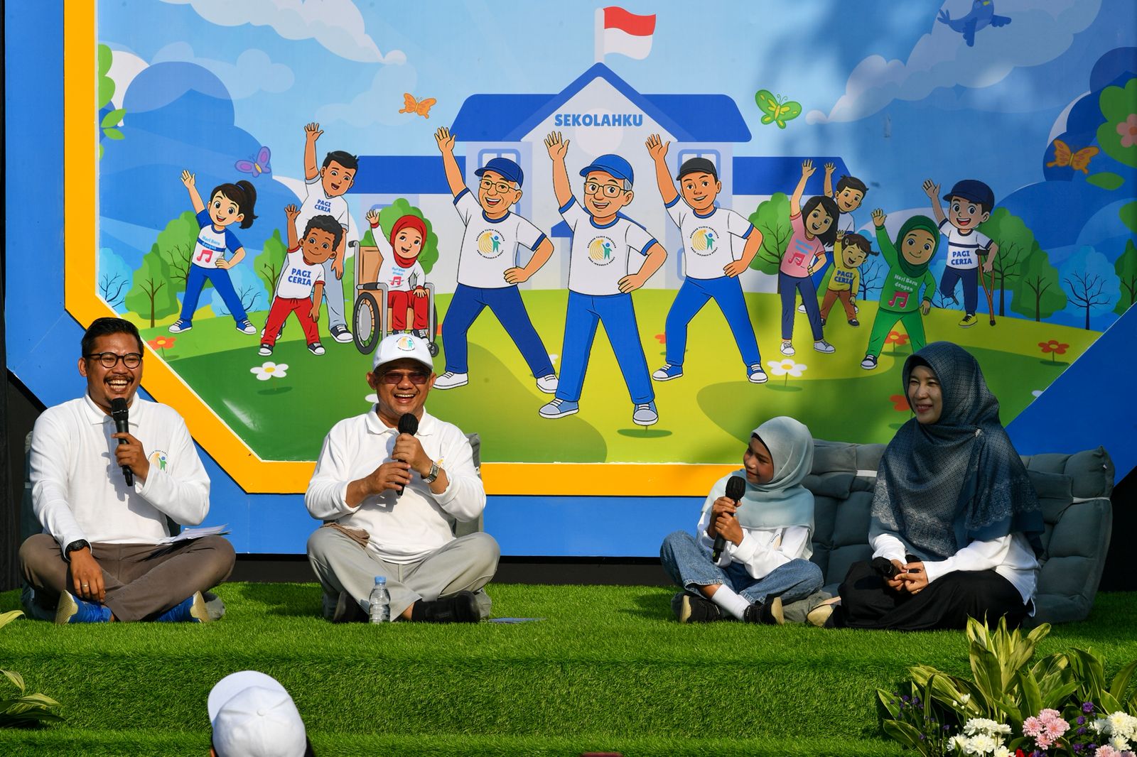 Selain meraih rekor MURI, kegiatan tersebut juga diisi dengan sesi Cerita Pagi Ceria dimana perwakilan guru dan siswa berbagi pengalaman kepada Mendikdasmen mengenai harapan mereka di Hari Anak Nasional.