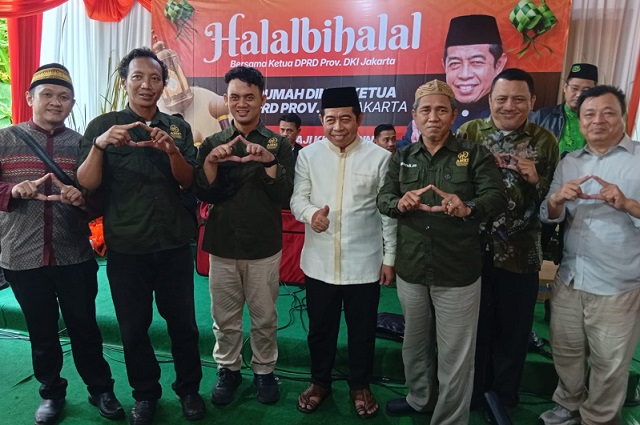 Sejumlah pengurus Asosiasi Media Konvergensi Indonesia (AMKI) DKI Jakarta atau AMKI Jaya memenuhi undanga acara halal bihalal Idul Fitri 1447 H/2026 M Ketua DPRD DKI Jakarta Ustadz H Khoiruddin di rumah dinas Jl Imam Bonjol Menteng, Jakarta Pusat, Kamis (26/3/2026).