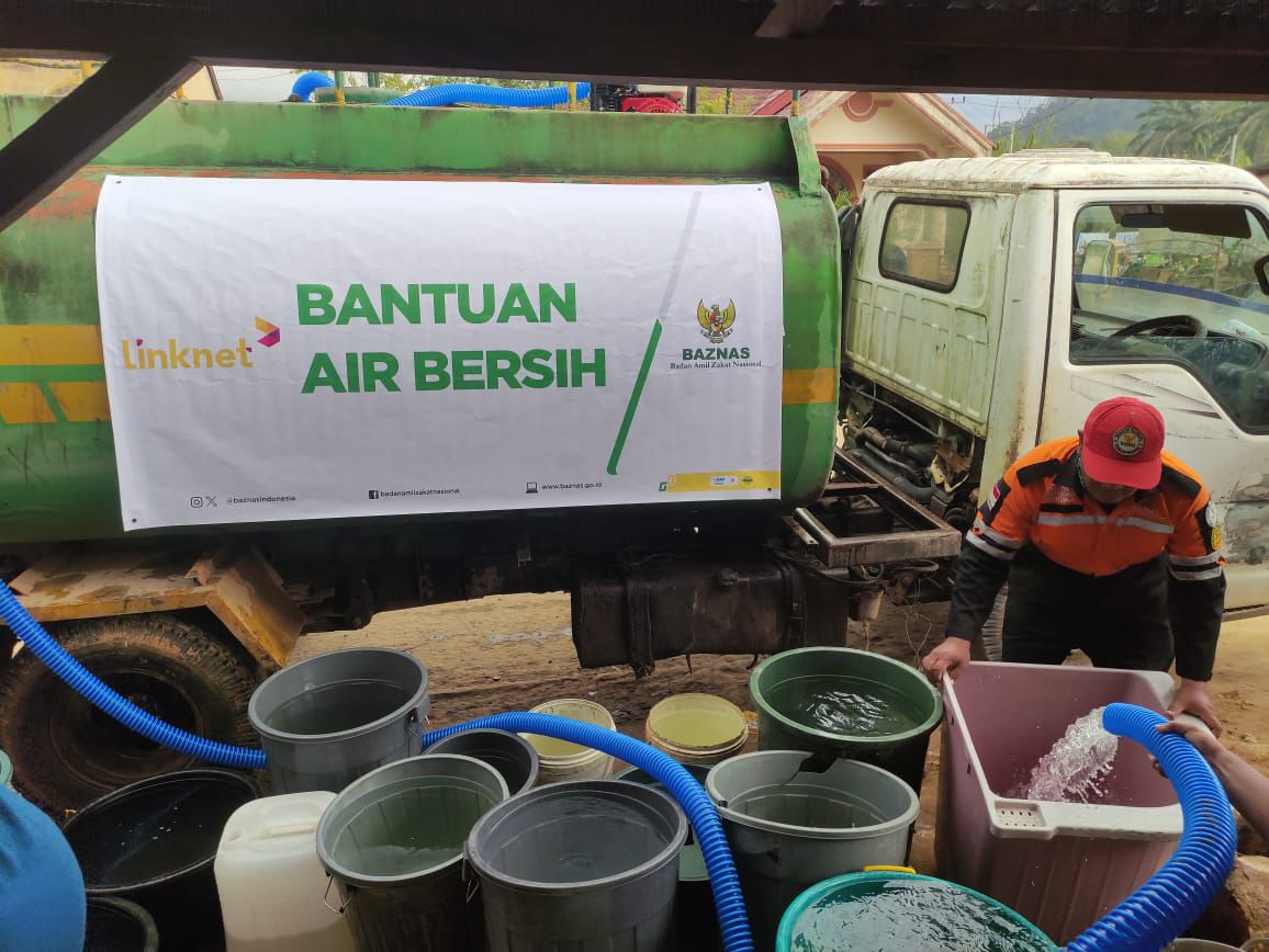 Badan Amil Zakat Nasional (BAZNAS) menyalurkan 24 ribu liter air bersih kepada warga terdampak banjir dan tanah longsor di Aek Manis, Kecamatan Sibolga Selatan, Kota Sibolga, Sumatra Utara.