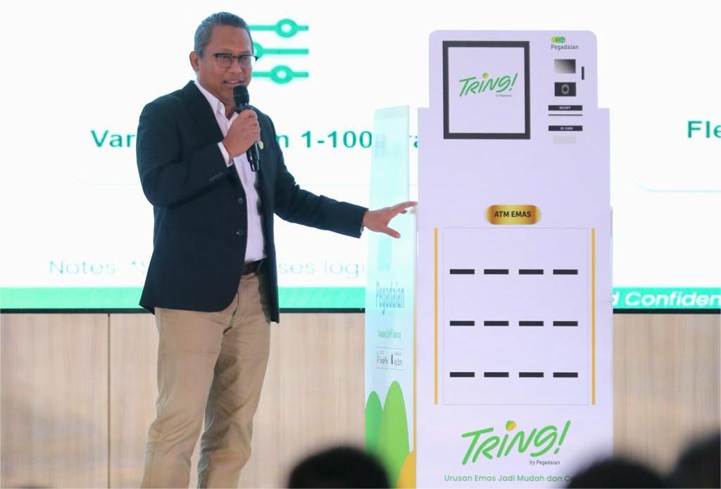 Direktur utama Pegadaian Damar Latri Setiawan sedang memaparkan detail tentang produk layanan aplikasi Tring! Foto: humas Pegadaian