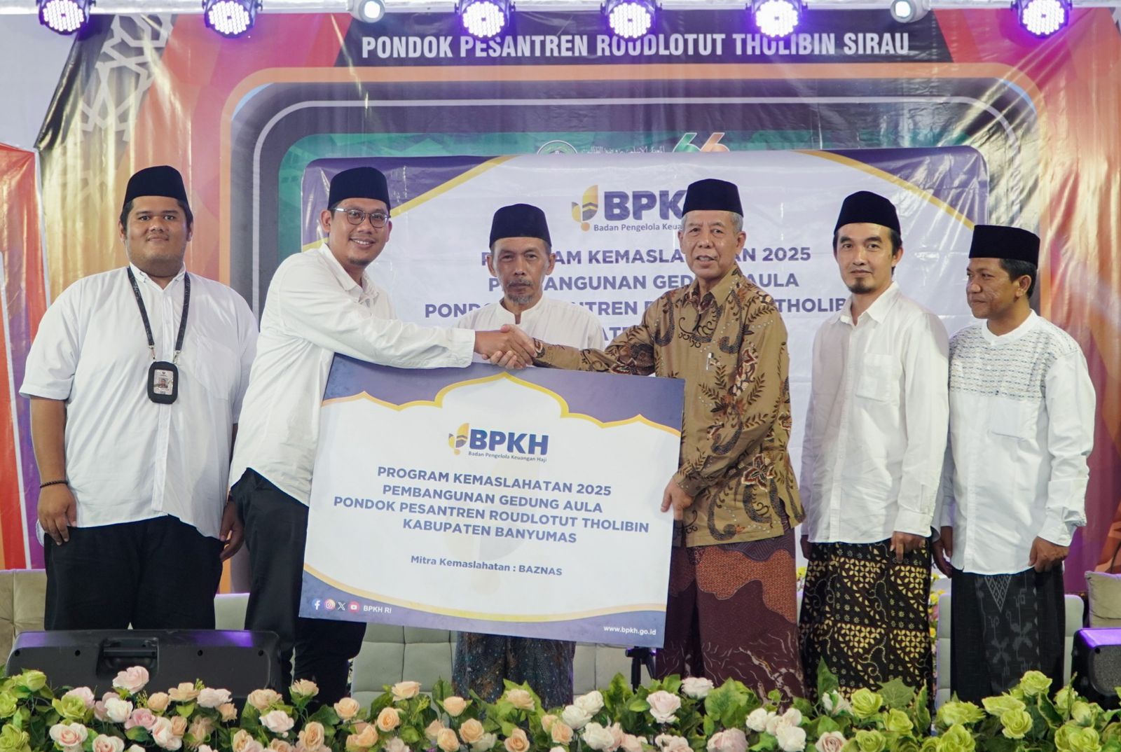 Badan Pengelola Keuangan Haji (BPKH) bersinergi dengan BAZNAS RI meresmikan Gedung Aula Pondok Pesantren Roudlotut Tholibin di Kabupaten Banyumas, Jawa Tengah. Pembangunan fasilitas ini menelan biaya sebesar Rp1,9 miliar.
