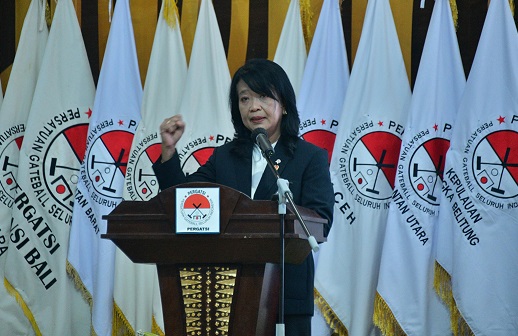 Wakil Menteri Pekerjaan Umum (Wamen PU) sekaligus Ketua Umum Pengurus Besar Persatuan Gateball Seluruh Indonesia (PB Pergatsi) Diana Kusumastuti membuka Rapat Kerja Nasional (Rakernas) Pergatsi 2025 di Balai Jasa Konstruksi Wilayah III Jakarta, Citeureup, Jawa Barat, Rabu (14/5/2025).