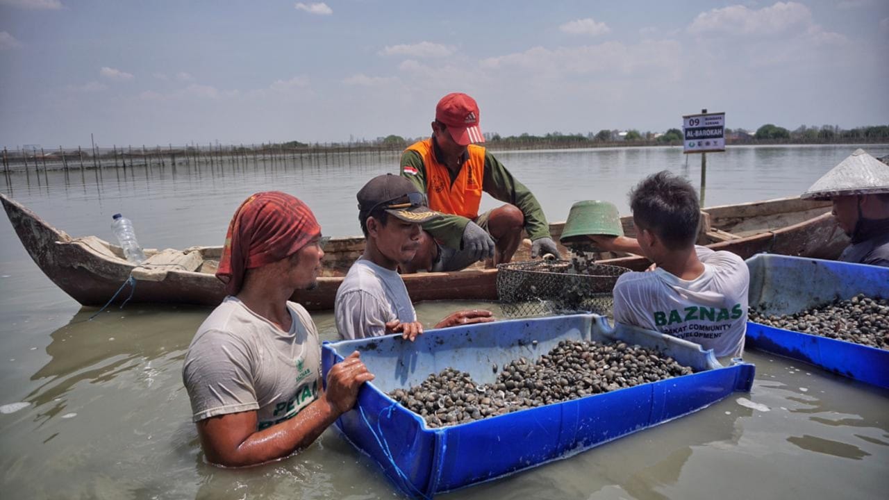 Dalam upaya meningkatkan perekonomian selama berlangsungnya krisis wabah virus corona jenis baru penyebab Covid-19, Badan Amil Zakat Nasional (Baznas) melalui lembaga Zakat Community Development bersama kelompok Mustahik binaan Al Barokah Tambaksari melakukan kegiatan tebar bibit kerang di Demak, Jawa Tengah.