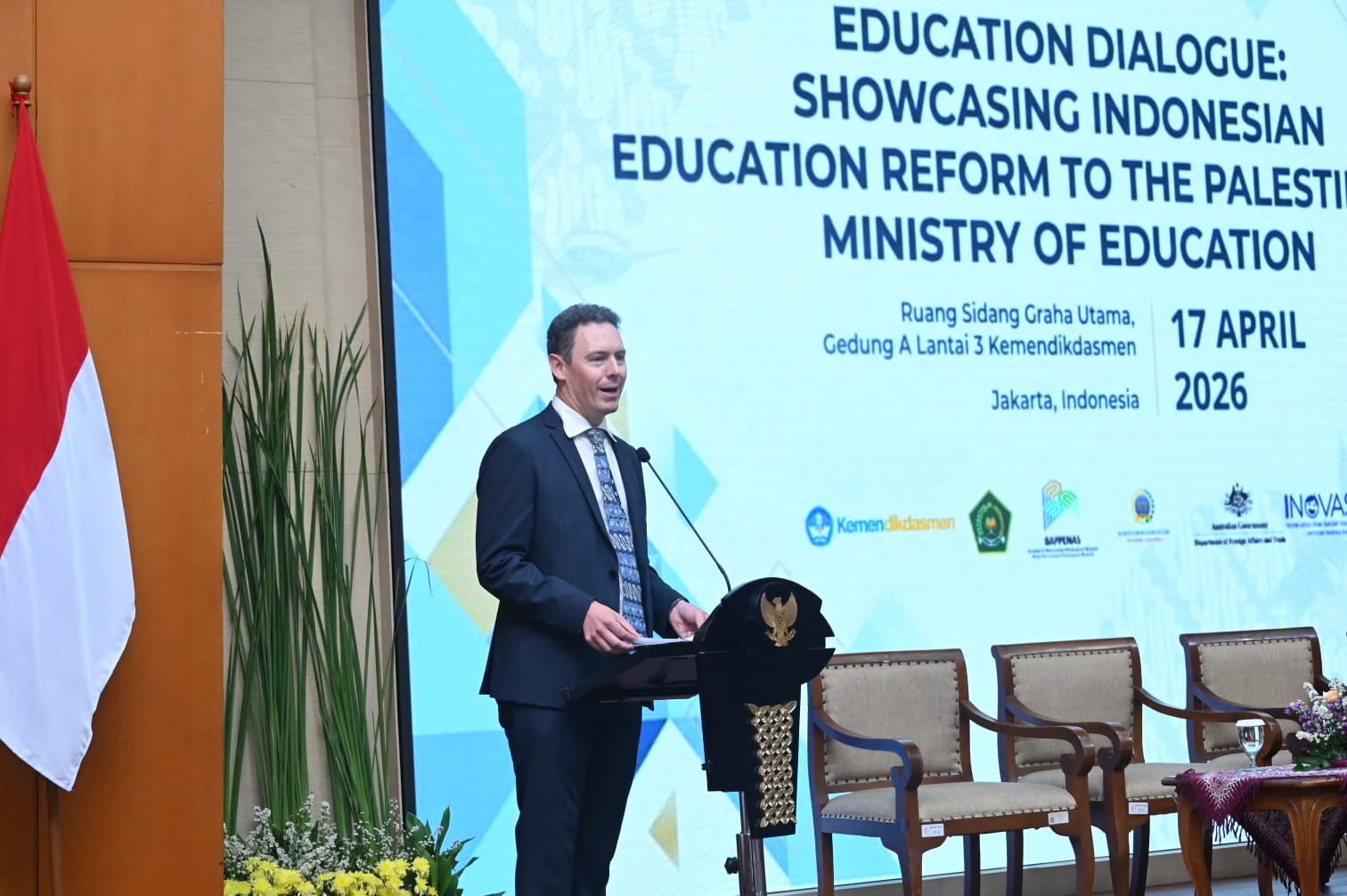 Dirjen Hubungan Ekonomi dan Kerja Sama Pembangunan Kementerian Luar Negeri Daniel Tumpal Sumurung Simanjuntak, menyampaikan dukungan terhadap penguatan kerja sama trilateral antara Indonesia, Australia, dan Palestina, khususnya dalam bidang pendidikan sebagai bagian dari upaya diplomasi pembangunan dan kemanusiaan.