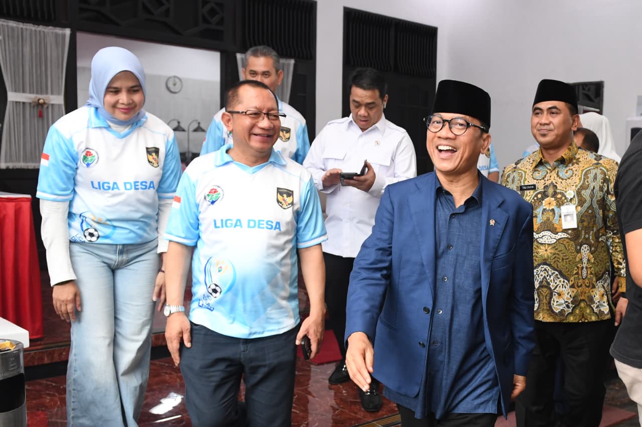 Mendes PDT Yandri Susanto bersama Wakil Mendes PDT Ahmad Riza Patria, Sesmenpora Gunawan Suswantoro, Wagub Jateng Taj Yasin, Bupati Semarang Ngesti Nugraha, Bupati Boyolali Agus Irawan, serta pejabat Forkopimda setempat melakukan Rapat Gabungan Persiapan Peringatan Hari Desa Tahun 2026 di Pendopo Rumah Dinas Bupati Semarang, Jawa Tengah, Kamis (20/11/2025).