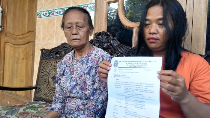 Tak disangka, pada bulan Mei, 2017 lalu Emmy Asih (53) anak sulung, dan Lalan Suwanto (41) anak keempat menggugat Sumiati dan Enik Murtini di Pengadilan Negeri Ngasem Kediri. Gugatan diajukan karena Sumiati dan Enik menggadaikan sertifikat tanah dan rumah.