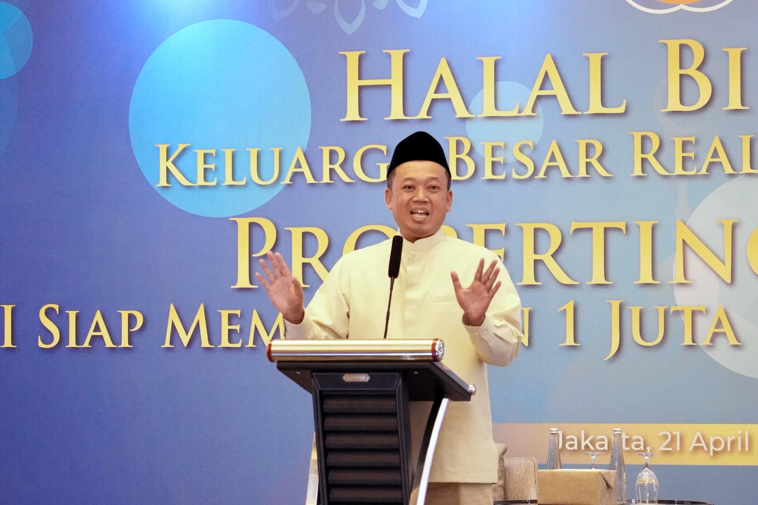 Menteri Agraria dan Tata Ruang/Kepala Badan Pertanahan Nasional (ATR/BPN) Nusron Wahid, hadir dalam acara Halalbihalal Keluarga Besar Realestat Indonesia (REI) di Sheraton Grand, Jakarta, yang berlangsung pada Senin (21/04/2025).