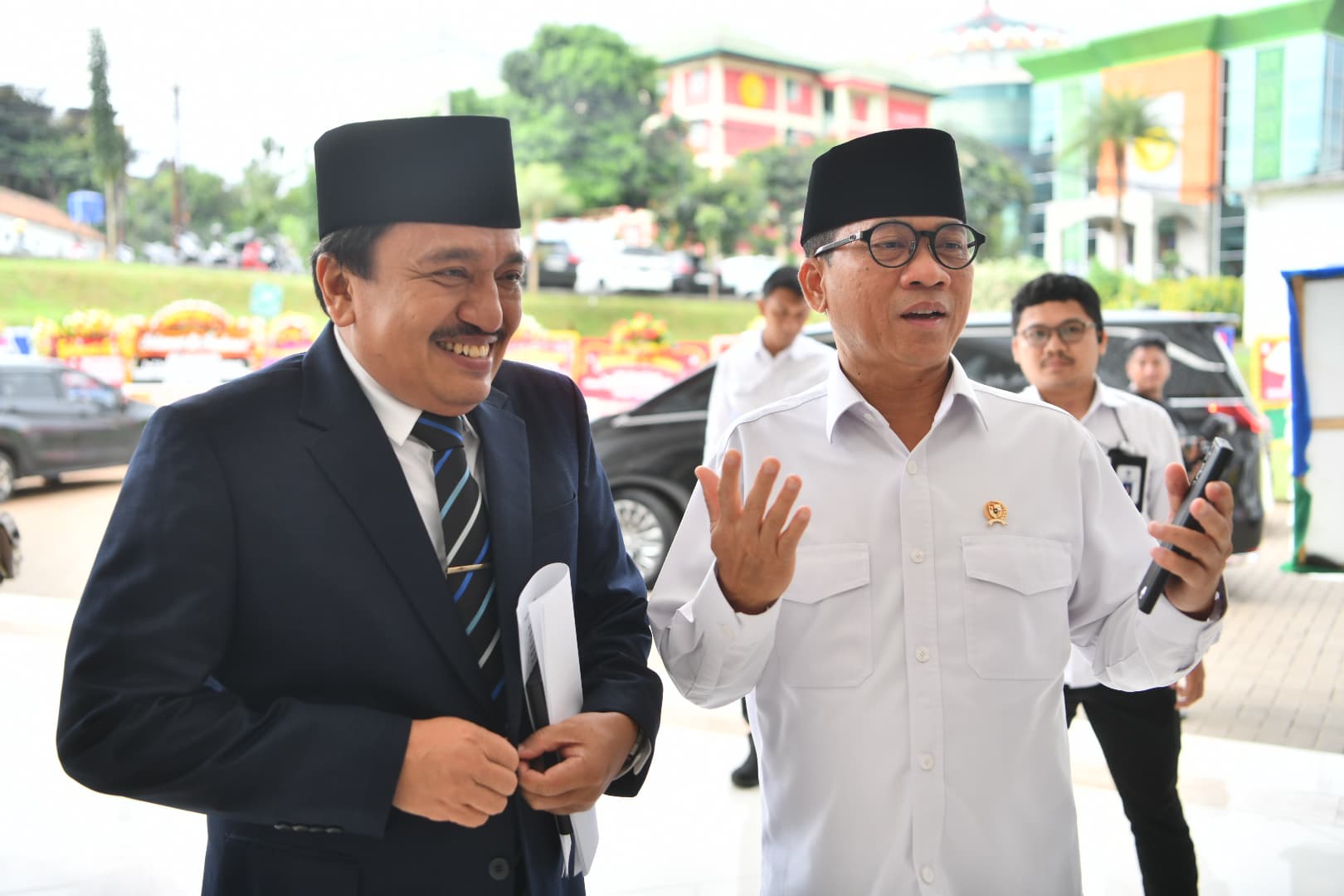 Mendes PDT Yandri Susanto menghadiri pelantikan Rektor Universitas Muhammadiyah Jakarta (UMJ) Ma’mun Murod Al-Barbasy di Ciputat Tangerang Selatan.