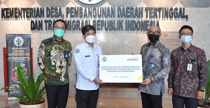 Gus Menteri juga menerima bantuan paket bahan pokok (sembako) Ramadhan dari salah bank BUMN ini. Gus Menteri menyampaikan terima kasih atas pemberian bantuan tersebut. “Terima kasih atas pemberian ini. Akan segera didistribusikan,” kata Gus Menteri. (fir/smr)