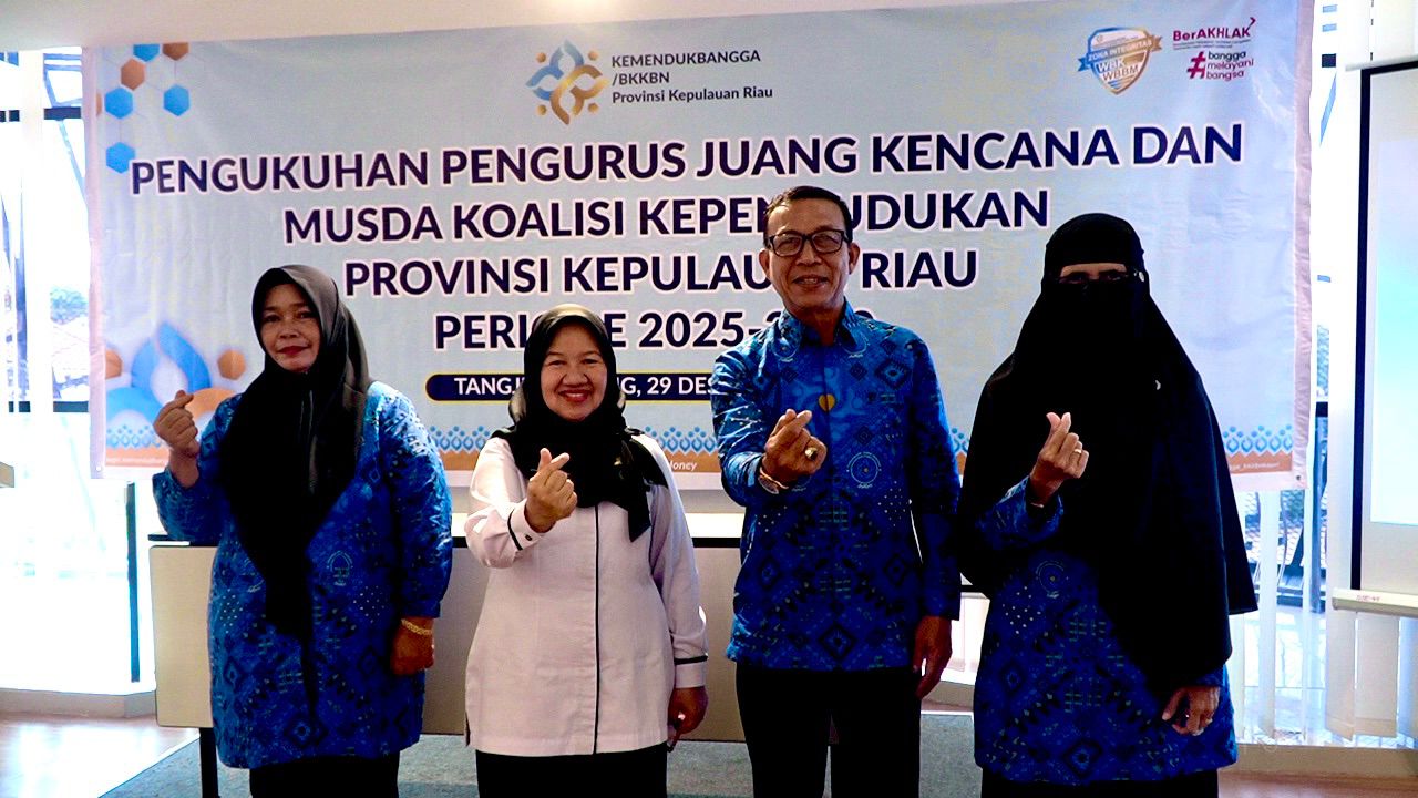 Kementerian Kependudukan dan Pembangunan Keluarga (Kemendukbangga)/BKKBN Perwakilan BKKBN Kepulauan Riau menggelar Pengukuhan Pengurus Perkumpulan Juang Kencana Periode 2025–2028. Kegiatan ini dirangkai dengan Musda Koalisi Kependudukan Kepri.