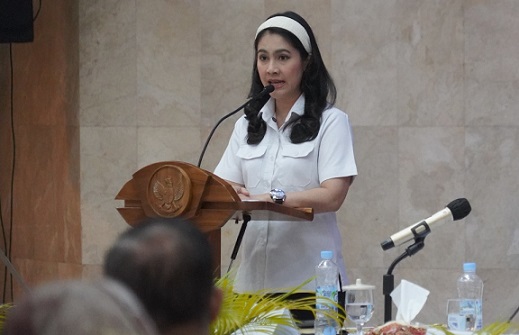 Wamendukbangga/Wakil Kepala BKKBN Ratu Ayu Bagoes Oka saat membacakan sambutan Mendukbangga/Kepala BKKBN Wihaji dalam acara pada kegiatan Komite Kebijakan Strategi Sektor Kependudukan, Pembangunan Keluarga dan Keluarga Berencana 2025, Kamis (17/4/2025) di kantor Kemendukbangga/BKKBN, Jakarta Timur. Foto: humas BKKBN