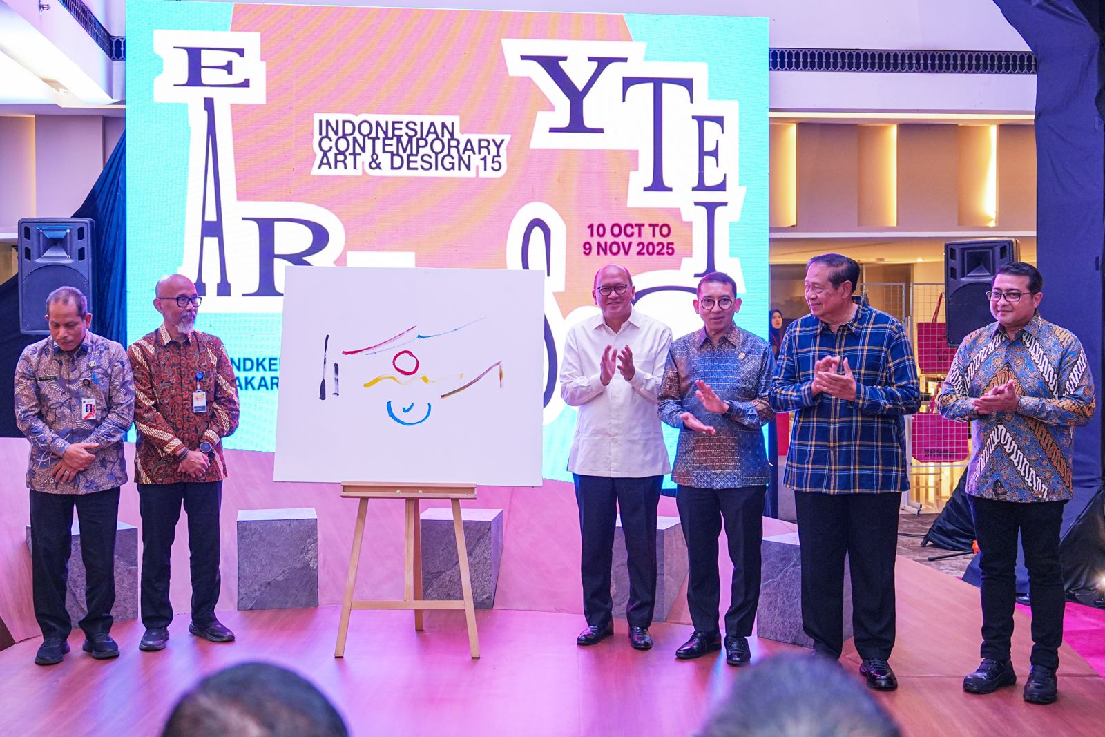 Karya paling menarik tentu dari Presiden RI ke-6, Susilo Bambang Yudhoyono (SBY) yang memajang 5 karya dari kepedulian maupun perenungan atas kehidupan dan alam. Dalam momen simbolik pembukaan, SBY ikut memberi goresan di atas kanvas sebagai tanda ICAD 15 sudah bisa dinikmati khalayak ramai. (hms/smr)