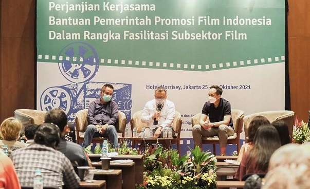 “Khususnya di tengah situasi pandemi melalui program pemulihan ekonomi nasional subsektor film yang terdiri dari tiga skema yakni promosi, lisensi, dan produksi,” ujar Neil dalam kegiatan Pengikatan Komitmen dan Penandatanganan Perjanjian Kerja sama Bantuan Pemerintah Promosi Film Indonesia di Hotel Morrissey, Jakarta, Senin (25/10/2021).