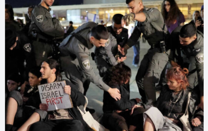 Di ibukota Tel Aviv, wartawan AFP melaporkan bahwa pasukan keamanan mendorong mundur beberapa demonstran dengan paksa, menjatuhkan beberapa orang ke tanah sementara setidaknya satu demonstran dicekik.