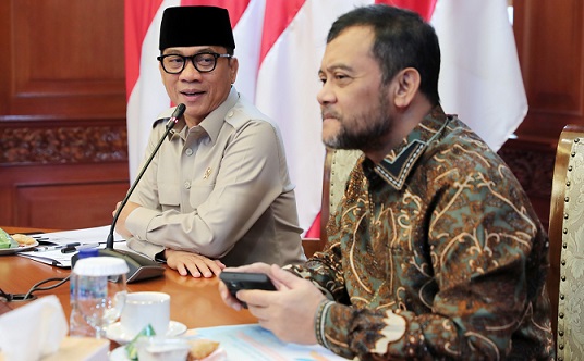 Mendes PDT Yandri Susanto (kiri) didampingi Wamendes PDT Ariza Patria saat menerima audiensi Ahmad Luthfi (kanan) yang merupakan Gubernur Jawa Tengah Terpilih periode 2024-2029 di ruang kerjanya, Kemendes PDT, Kalibata, Jakarta Selatan, Selasa (4/2/2025). Foto: humas Kemendes PDT