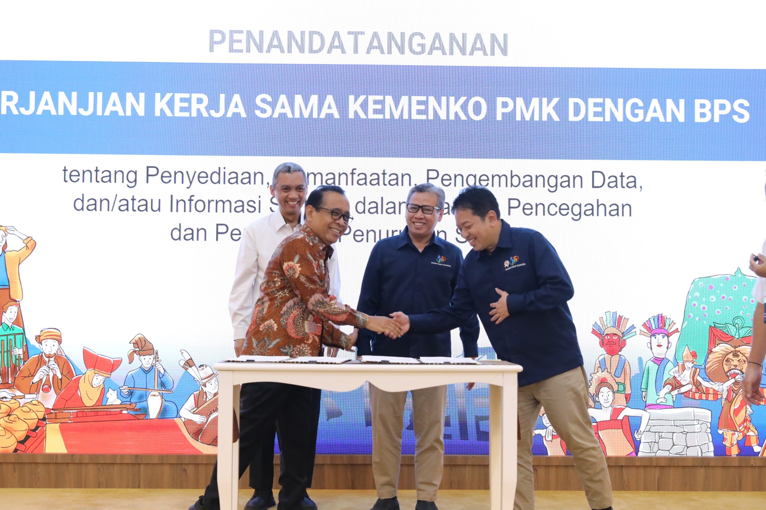 Penandatanganan kerja sama ini dilakukan oleh Deputi Bidang Statistik Sosial BPS Ateng Hartono dan Sesmenko PMK Imam Machdi, serta disaksikan langsung oleh Menko PMK Pratikno dan Wakil Kepala BPS Sonny Harry Budiutomo Harmadi.