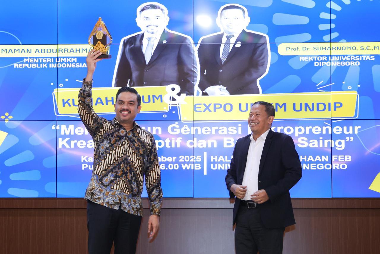 “Saya berharap mahasiswa berani memulai usaha sejak sekarang. Keberanian mewujudkan mimpi adalah jalan menuju masa depan yang cerah,” kata Maman, saat menyampaikan kuliah umum di Undip, dirilis humas usai acara melalui WAGroup Media Teman UMKM, Jumat sore (21/11/2025).