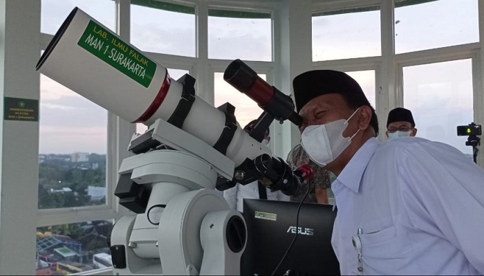 Memantau posisi hilal dengan teropong khusus untuk penetapan 1 Syawal 1443 Hijriyah. Foto: humas Kemenag