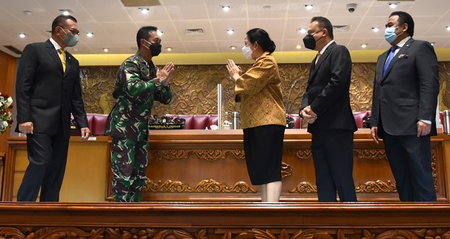 “Menyetujui pemberhentian dengan hormat Marsekal TNI Hadi Tjahjanto SIP sebagai Panglima TNI. Memberikan persetujuan terhadap pengangkatan calon Panglima TNI Jenderal Andika Perkasa, SE, MA, MSC, sebagai Panglima TNI,” kata Meutya di Ruang Rapat Paripurna DPR, Senayan, Jakarta.