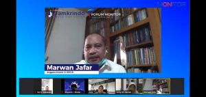Pemulihan Ekonomi Nasional sektor UMKM– Diskusi Forum Monitor bertajuk Pemulihan Ekonomi Nasional Sektor UMKM secara virtual melalui fasilitas platform Zoom, pada Jumat (10/7/2020). Menghadirkan pembicara Anggota Komisi VI DPR RI Marwan Ja’far (foto ketiga dari arah jarum jam), Peneliti senior Institute for Development of Economics and Finance (INDEF) Enny Sri Hartati, dan Asisten Deputi Permodalan Kemenkop UKM Fixy. Sedangkan paling kanan bawah Wiyanto sebagai moderator.