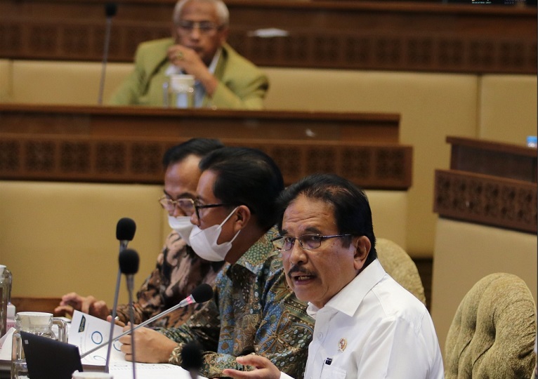 Menteri Agraria Tata Ruang (ATR)/Kepala Badan Pertanahan Nasional (BPN) Sofyan A. Djalil bersama Wakil Menteri ATR/Wakil Kepala BPN Surya Tjandra beserta Pejabat Pimpinan Tinggi Madya dan Pratama Kementerian ATR/BPN menghadiri Rapat Kerja dengan Komisi II DPR RI, Selasa (18/1/2022) di Ruang Rapat Komisi II Gedung Nusantara DPR RI, Senayan, Jakarta Selatan
