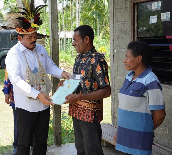 Menteri ATR/BPN Hadi memastikan pendaftaran tanah telah dirasakan masyarakat hingga ujung timur Indonesia, yaitu di Kampung Kuipons, Distrik Nimboran, Kabupaten Jayapura, Provinsi Papua, Selasa (17/10/2023).