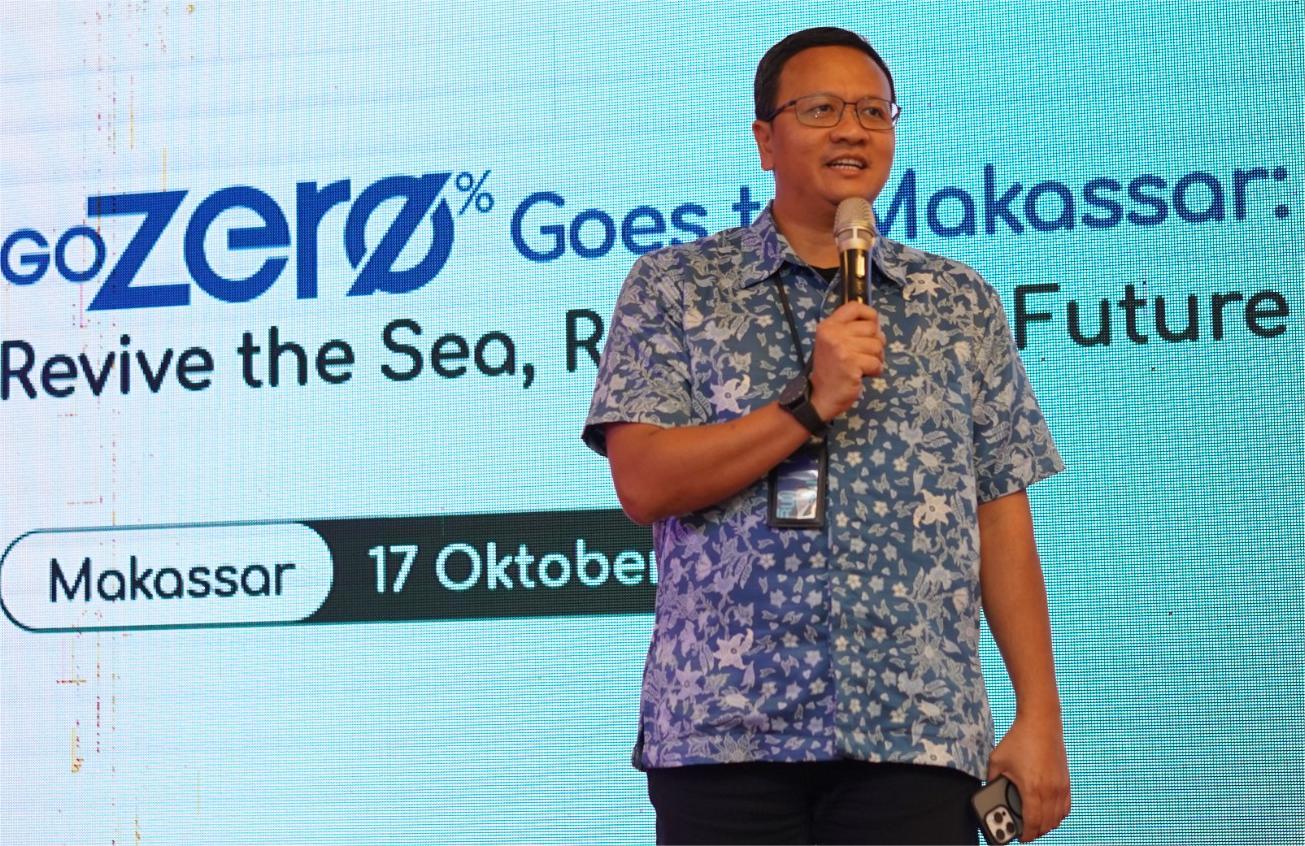 VP Sustainability Telkom Gunawan Wasisto C.A saat memberikan sambutan pada acara Roadshow GoZero% Goes to Makassar, Jumat (17/10/2025). Foto: humas Telkom