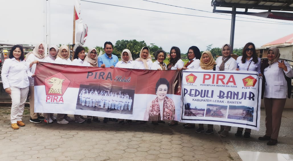 Sayap organisasi Partai Gerindra, PP PIRA (Pengurus Pusat Perempuan Indonesia Raya) Peduli menggelar Bakti Sosial PIRA PEDULI musibah banjir di Kampung Somang, Desa Sukarame, Kecamatan Sajira, Kabupaten Lebak, Banten, Selasa (21/1/2020).