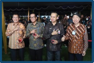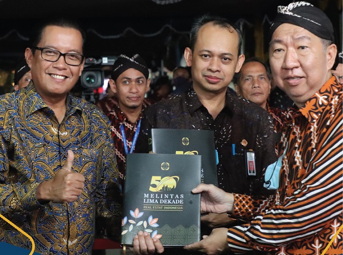 semarak.co-Menteri Agraria dan Tata Ruang/Kepala Badan Pertanahan Nasiona (ATR/BPN) Sofyan A. Djalil diwakili Sekretaris Jenderal Kementerian ATR/BPN Himawan Arief Sugoto (baju batik paling kiri foto atas) menghadiri peringatan ulang tahun emas ke-50 Realestat Indonesia (REI). Turut hadir, Plt. Direktur Jenderal Tata Ruang Abdul Kamarzuki (batik hijau berjaket biru tua paling kanan foto kanan) di Plataran Candi Prambanan, Yogyakarta, Jumat (20/5/2022) ini mengusung tema Ulang Tahun Emas REI: Garda Terdepan Mewujudkan Indonesia Tangguh dan Indonesia Tumbuh. (ls/rk/smr)