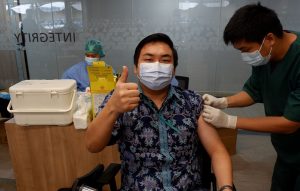President Director & CEO Sequis Tatang Widjaja yang ikut menerima vaksinasi Sinopharm untuk Covid-19 bersama karyawannya, bersemangat melihat antusiasme para karyawan yang ikut serta dalam program vaksin ini.