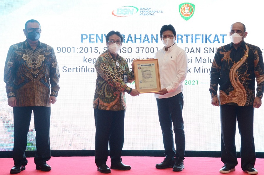 Proses sertifikasi Sistem Manajemen Mutu SNI ISO 9001:2015 dan Sistem Manajemen Anti Suap SNI ISO 37001:2016 Provinsi Maluku merupakan kerja sama antara Sucofindo dengan Badan Standardisasi Nasional (BSN).