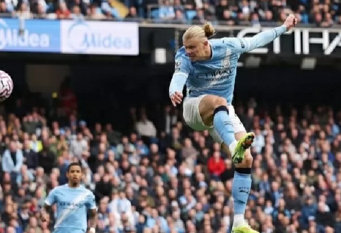 Gagal mengeksekusi penalti dari titik putih, striker haus gol Erling Haaland pun berhasil menebusnya lewat gol tandukan presisinya. Ini adalah gol pembuka sebelum Manchester biru berpesta gol ke gawang Liverpool.