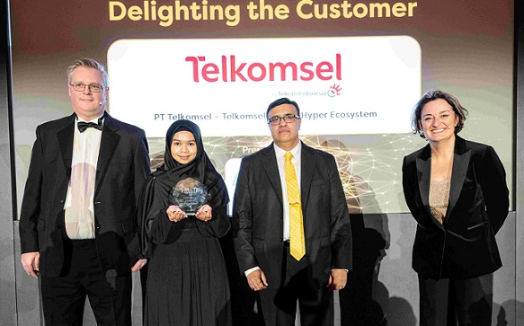 Telkomsel menerima penghargaan internasional Global Telecom (Glotel) Awards 2024 kategori Delighting the Customer berkat inovasi Digital Hyper Ecosystem pada MyTelkomsel. Penghargaan ini diberikan di London, Inggris, Kamis (21/11/2024). Foto: humas Telkomsel