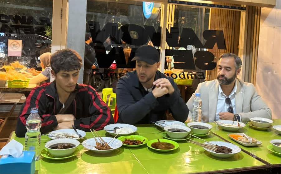 “Rawon enak, sate enak!” ucap Maher Zain yang diikuti Harris J sambil mengangkat sate yang dipegangnya seperti dirilis yang dilansir melalui WAGroup Jurnalis Syariah, Minggu pagi (16/11/2025).