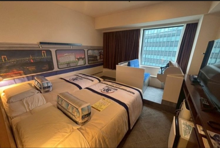 Adapun kamar hotel bertema kereta api itu hadir dalam rangka Yurikamome 30th Anniversary Collaboration Room. Tamu bisa menginap dengan merasakan tidur bersama kabin masinis dan juga pernak-pernik bertema kereta api.