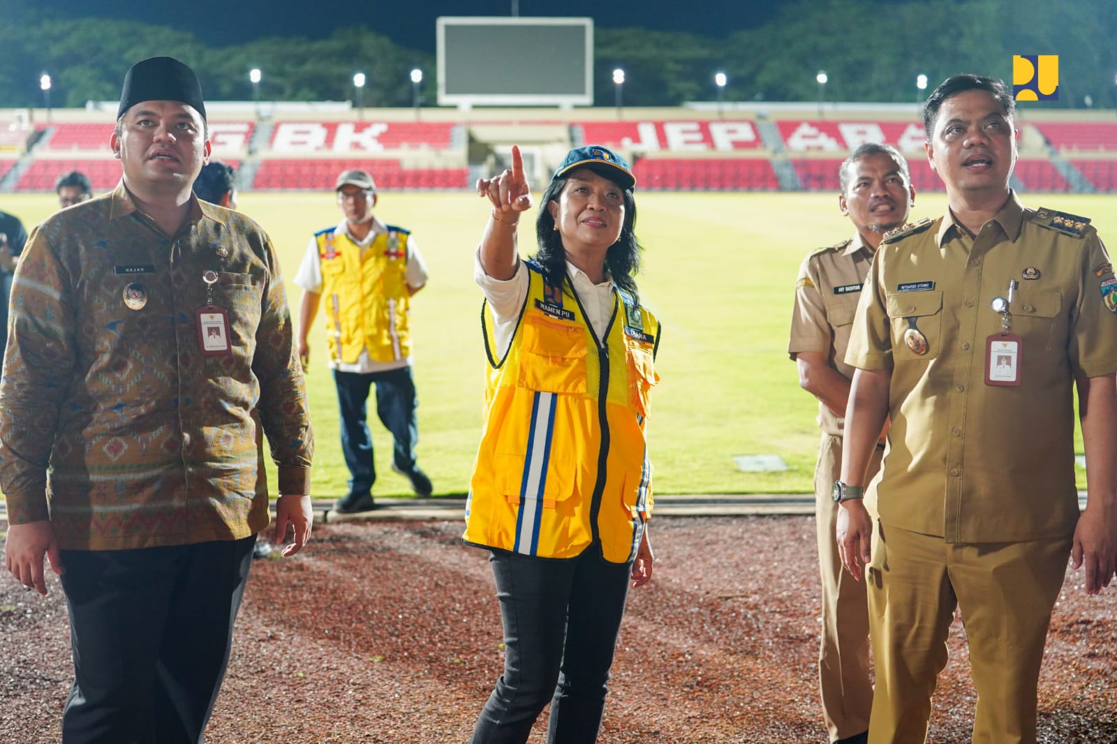 Wakil Menteri Pekerjaan Umum Diana Kusumastuti meninjau renovasi Stadion Gelora Bumi Kartini Jepara. Stadion ini merupakan salah satu dari 17 stadion yang telah diresmikan Presiden Prabowo pada Senin 17 Maret 2025.