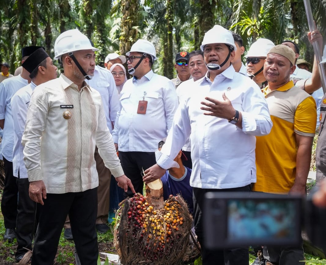 Wakil Menteri Transmigrasi Viva Yoga Mauladi menemui transmigran di perkebunan sawit Desa Karya Harapan Mukti, Kecamatan Pelepat Ilir, Kabupaten Bungo, Jambi. Dia mengatakan, kunjungan untuk melihat langsung keberhasilan program transmigrasi.