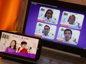 (foto paling bawah) COO Zenius Tantia Dian saat memaparkan kolaborasi Zenius dan Telkomsel. Zenius memiliki misi untuk membawa kompetensi Indonesia ke level dunia, dan berkolaborasi dengan mitra seperti Telkomsel yang berkomitmen dalam pengembangan Indonesia sudah terbukti suportif.